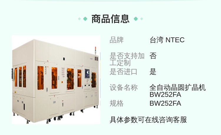 全自动晶圆扩晶机 BW252FA SECM/GEM 功能扩晶设备 产品关键词:扩晶;全自动晶圆工程;中国台湾全自动扩晶机;中国台湾自动扩晶机;全自动扩晶机