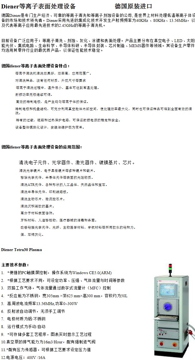 德国Diener品牌Tetra30型号等离子表面处理仪