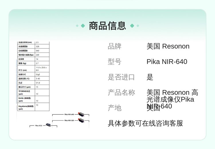 美国Resonon品牌Pika NIR-640型高光谱成像仪进口设备