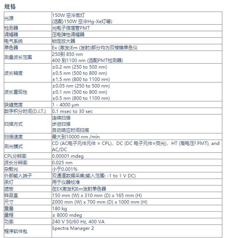 CPL-300使用由Steinberg提出的原始180°荧光收集方法。 标准的无臭氧150W Xe灯可由用户更换为Hg / Xe源。 仪器的双棱镜激发和发射单色器提供非常低的杂散光,并且没有衍射光栅引起的杂散线性偏振效应。