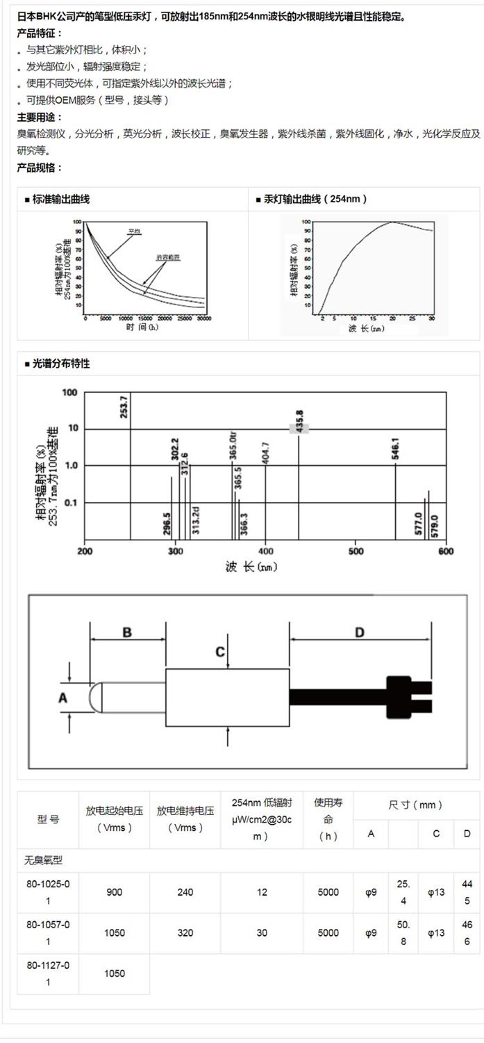 日本BHK 笔型低压汞灯 产品关键词:日本汞灯;BHK汞灯;bhk汞灯