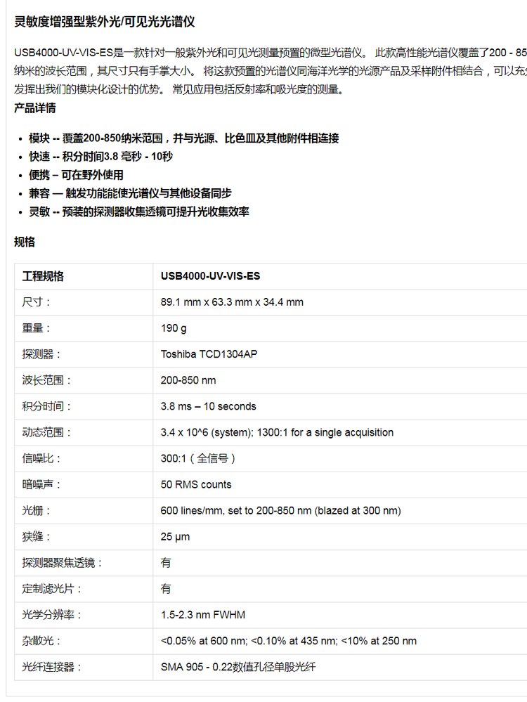 灵敏度增强型紫外光/可见光光谱仪USB4000-UV-VIS-ES
