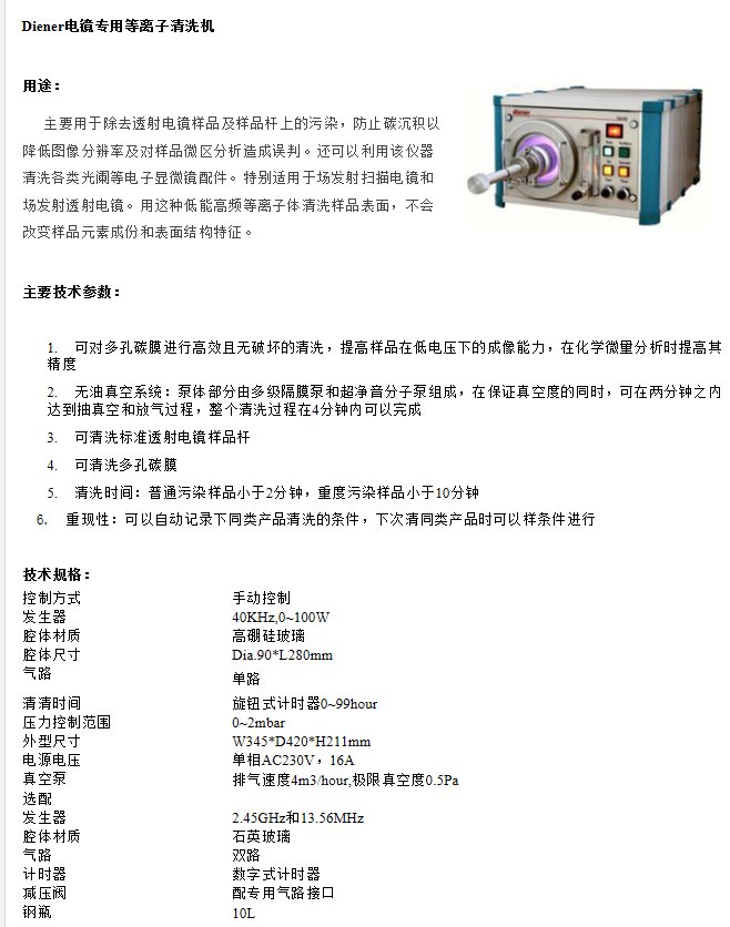 德国Diener 电镜专用等离子清洗机Femto 产品关键词:femto等离子清洗