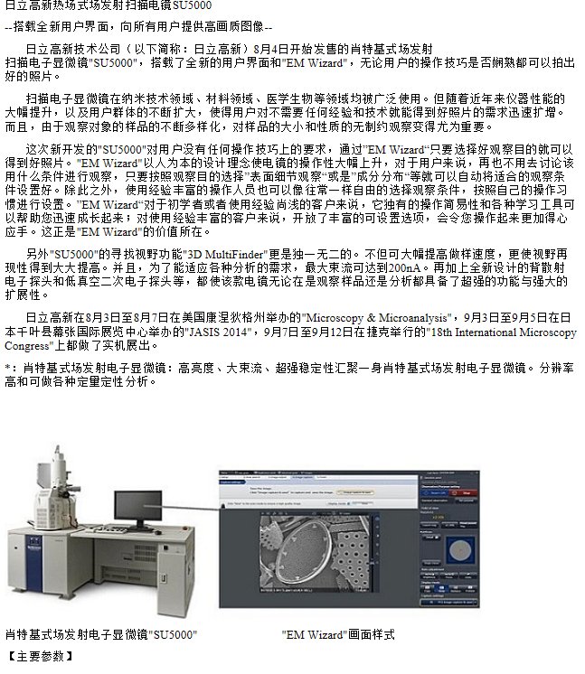 我的位置:首页 > 产品中心 > 电子元器件 > 五金/焊接/辅料/返修工具 > 日本日立 SU5000高新热场式场发射扫描电镜 产品关键词:场发射扫描电镜的生产;场发射扫描电镜;热场式场发射;日立热场扫描电镜;日本场发射扫描电镜;su5000扫描电镜;场发射扫描电镜s...
