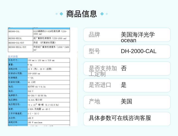 美国海洋光学ocean 氘卤钨标准能量灯DH-2000-CAL