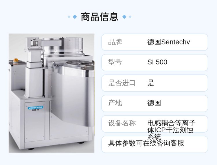 我的位置:首页  >  产品中心  >  机械设备  >  电子产品制造设备  >  德国Sentechv SI 500 电感耦合等离子体ICP干法刻蚀系统 产品关键词:ICP刻蚀系统;500等离子体;等离子刻蚀系统