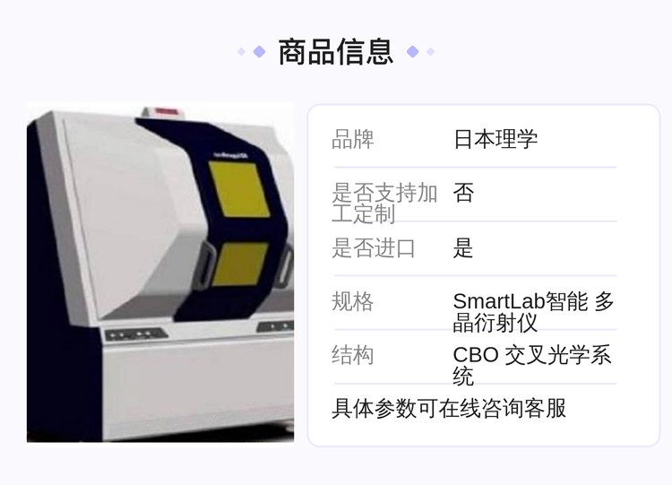 日本理学 XRD SmartLab智能 X 射线多晶衍射仪 CBO 交叉光学系统 产品关键词:衍射光学系统;xrd的smartlab;smartlab衍射仪;日本理学公司;xrd光学系统;sma...