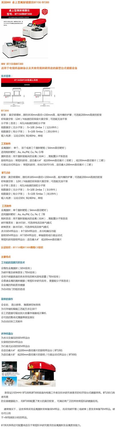英国HHV 桌上型溅射镀膜仪BT150/BT300