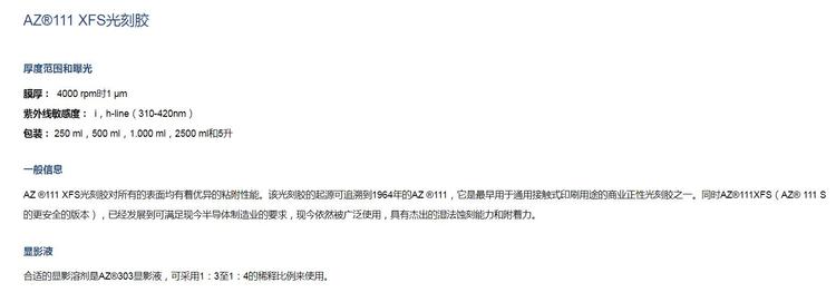 安智AZ 正性光刻胶薄胶111 XFS