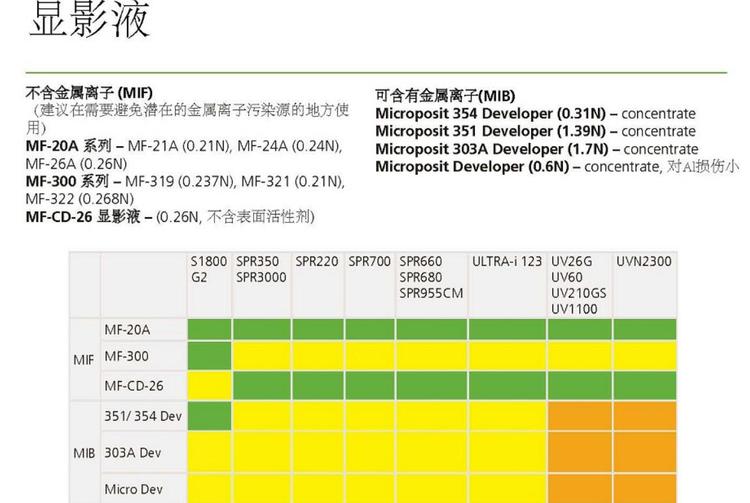 DOW陶氏 显影液MF-20A /MF-300系列/MF-26A /MF-319