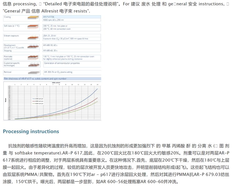 德国Allresist 正电子束光刻胶 AR-P 610系列,用于纳米光刻的 AR - P617电子束电阻,共聚物抗蚀剂系列用于生产集成电路和掩模。
