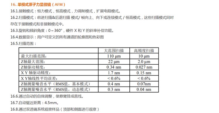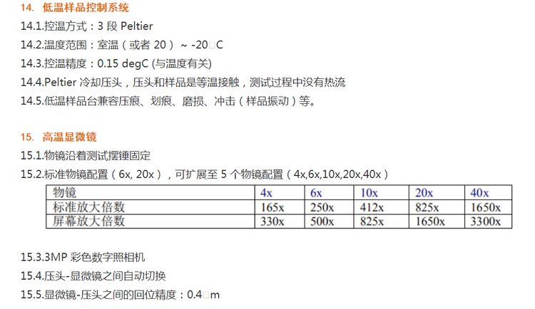 2.2.4. 最小接触力:1 N, 用户根据不同的样品通过软件来设置为 0
