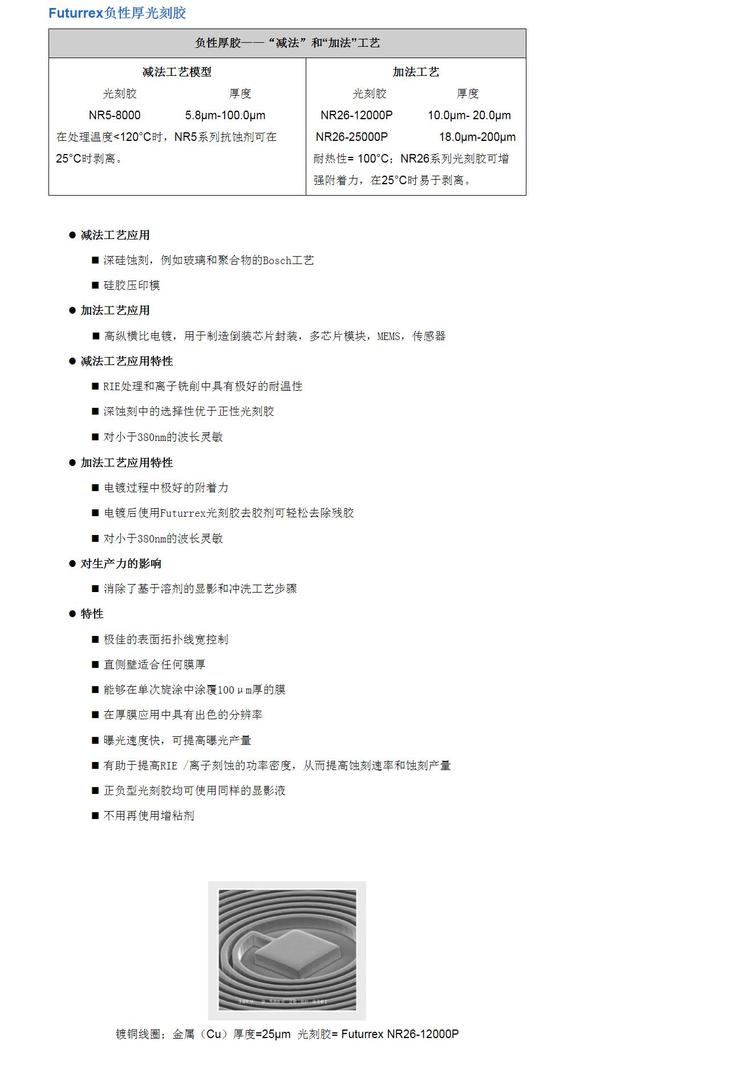 Futurrex 厚胶负性光刻胶NR5-8000 NR26-12000P