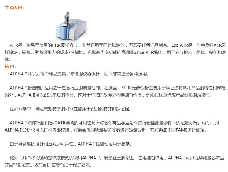 德国BrukerALPHAIIFTIR傅立叶变换近红外光谱仪FTIR光谱仪ALPHAII将出色的质量与小巧的外观相结合,为用户的便利性设定了基准