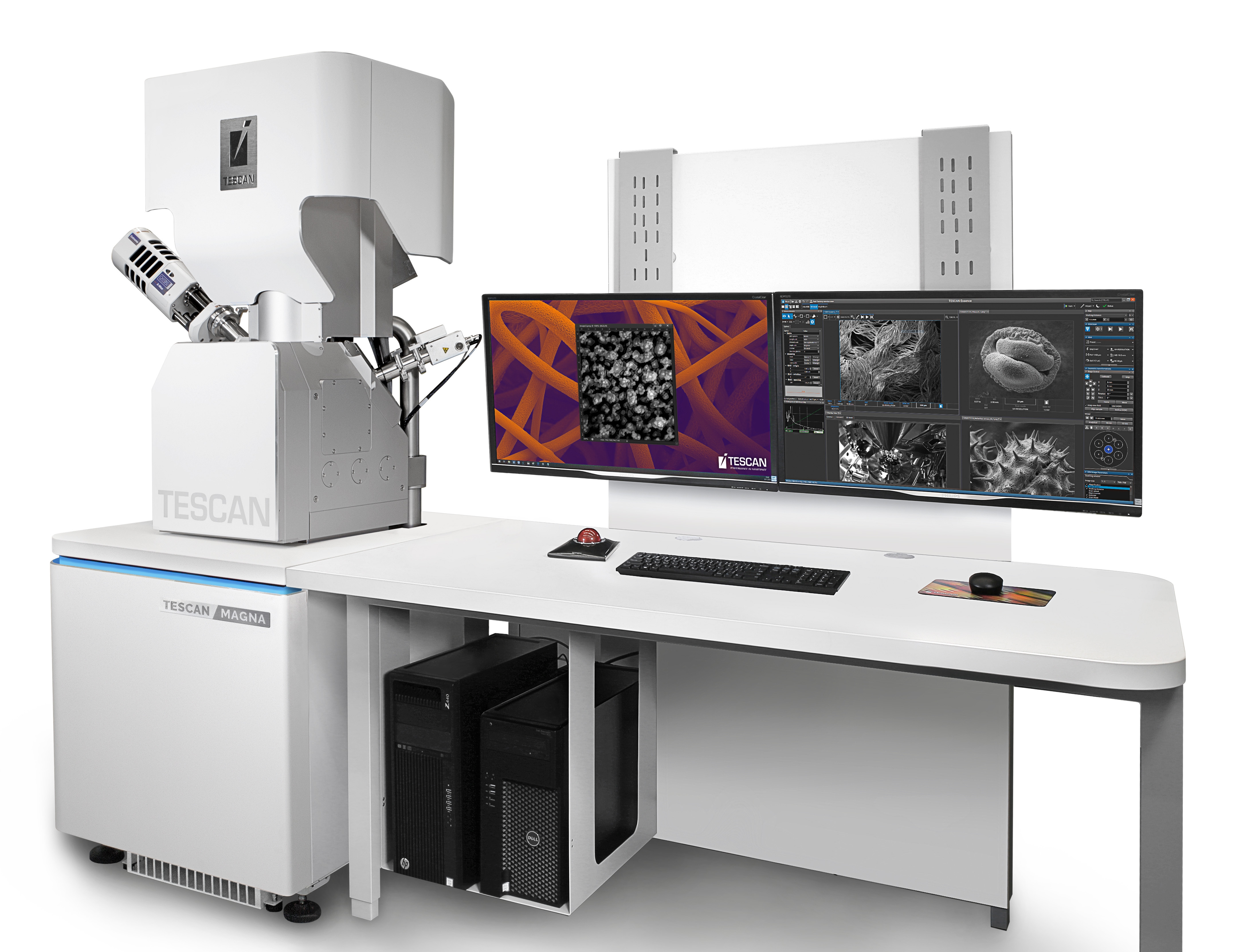 TESCAN MAGNA 是一款功能极其强大的分析仪器,适用于纳米材料的形貌表征以及微观分析。TESCAN MAGNA 配置 Triglav™ 型 SEM 镜筒,具有超高的分辨率,在低电压下尤为明显;镜筒内探测器系统具有电子信号过滤能力,可以获得更好的图像衬度和表面灵敏度,非常适用于不导电样品的成像,如陶瓷、无涂层生物样品,以及在半导