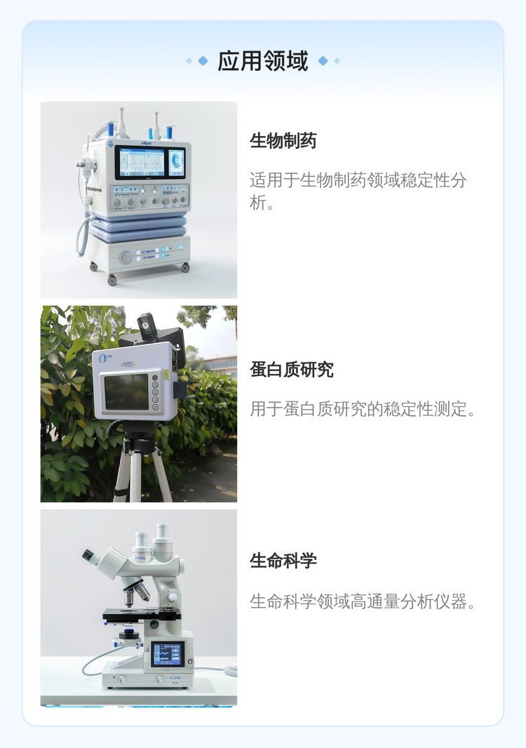 PR系列蛋白稳定性分析仪——精确表征蛋白稳定性的新黄金标准PR 系列仪器可精确测定蛋白的变性温度 (Tm 和 Tonset)、变性剂浓度 (Cm)、折叠自由能 (Δ G 和 ΔΔG) 以及蛋白形成聚集的起始温度 (Tagg),使您可以信心满满地为下游的每一个环节做出正确的决定。