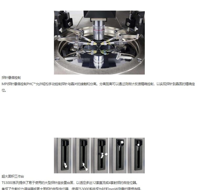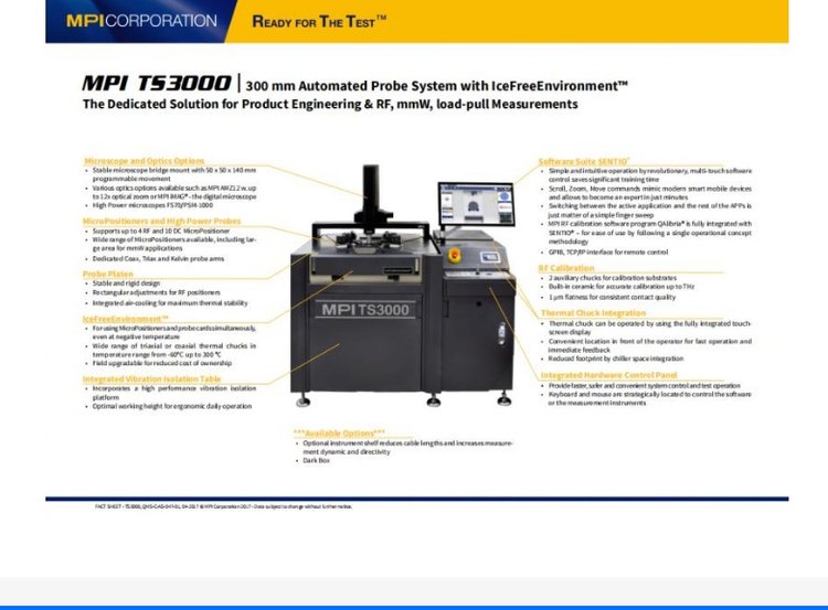 结合了MPI的IceFreeEnvironment™,TS3000可以在-60至300°C的宽温度范围内对300mm的晶片进行微型定位器和(或)探针卡测试,并具有在胶片框架上进行探测的附加功能。
