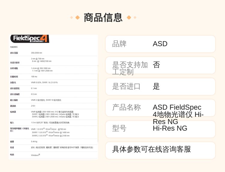 英国进口ASD品牌Hi-Res NG型号地物光谱仪 服务完善售后齐全
