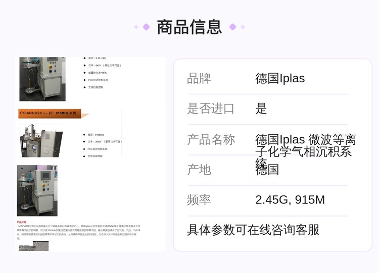 德国Iplas 微波等离子化学气相沉积系统 产品关键词:等离子沉积系统