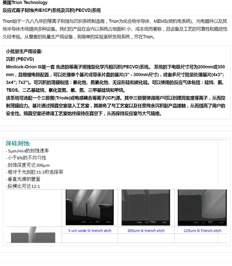 等离子增强型化学汽相沉积系统Minilock-Orion III