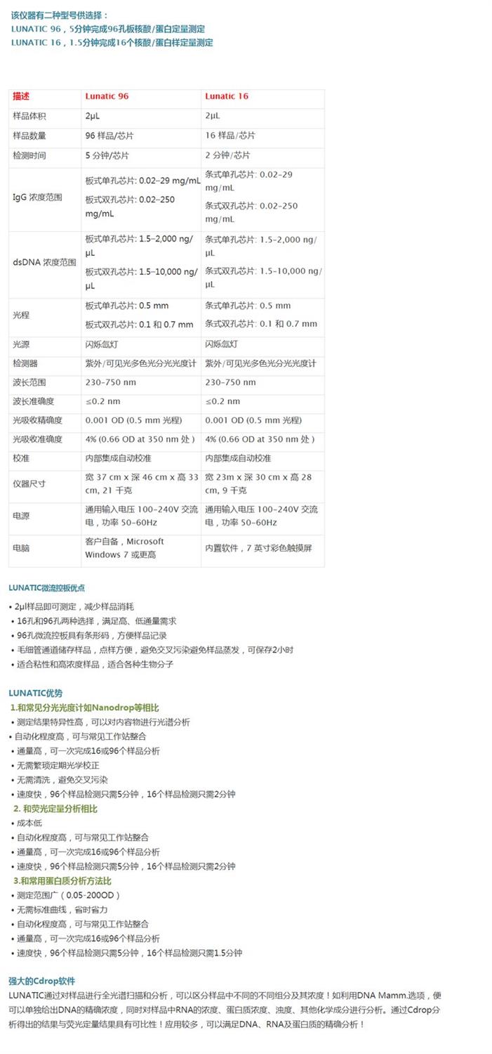 美国Unchained 高通量微流控分析仪Lunatic 96, Lunatic 16