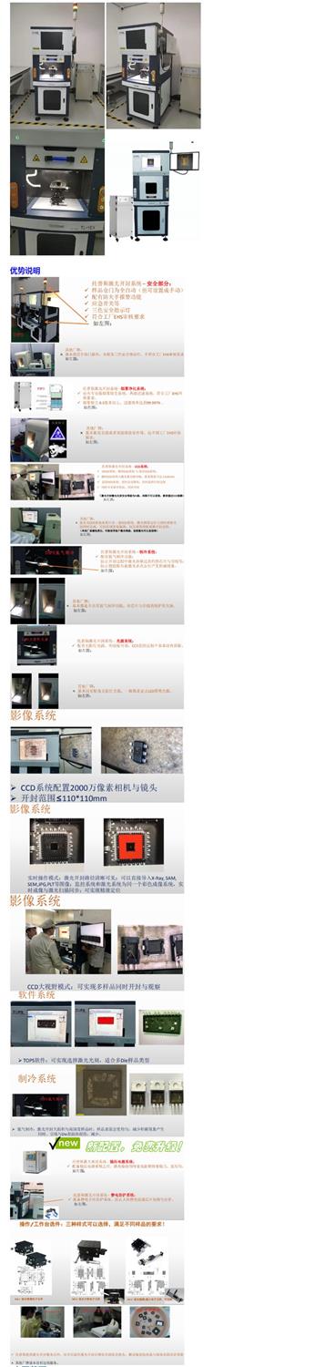 TL-1系列产品激光开封设备FA 系列。半导体业的铜引线封装越来越成为发展主流,传统的化学开封已无法满足铜引线封装的开封要求。