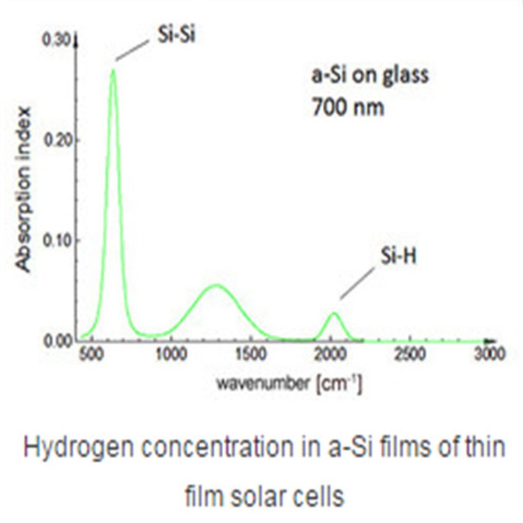 利用红外光谱中分子振动模的吸收带,可以分析薄膜的组成。此外,载流子浓度可以用傅立叶红外光谱仪FTIR测量。