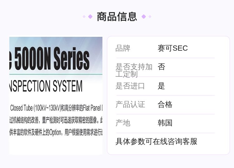 赛可SEC品牌 X-eye 5000N型号 X-RAY检测设备 韩国产地售后齐全