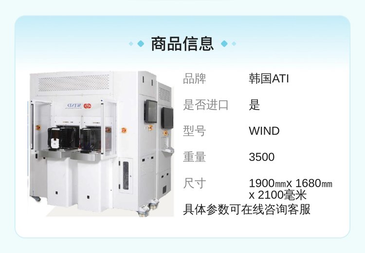 韩国ATI 晶圆检查机WIND 不锈钢柜式检查模组设备 产品关键词:韩国检查机;韩国牌子ati;韩国模组设备
