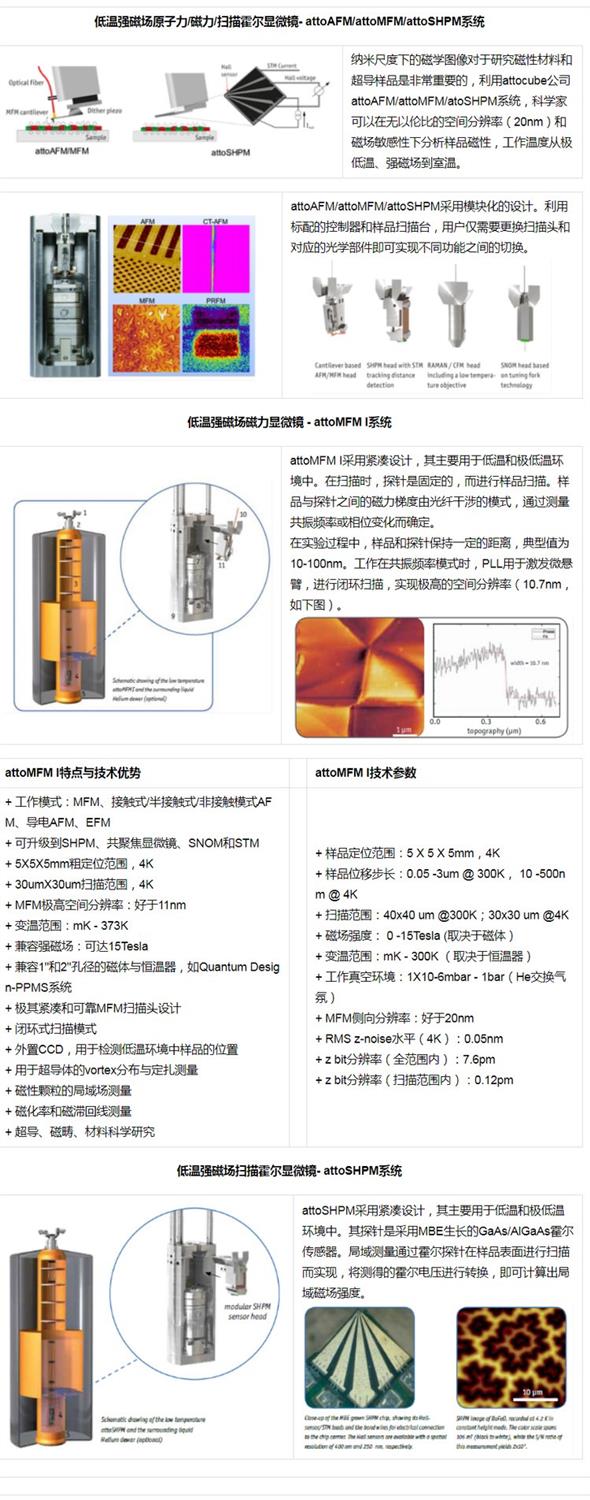attoAFM/attoMFM/attoSHPM系统 低温强磁场原子力/扫描霍尔显微镜 产品关键词:Hpm系统
