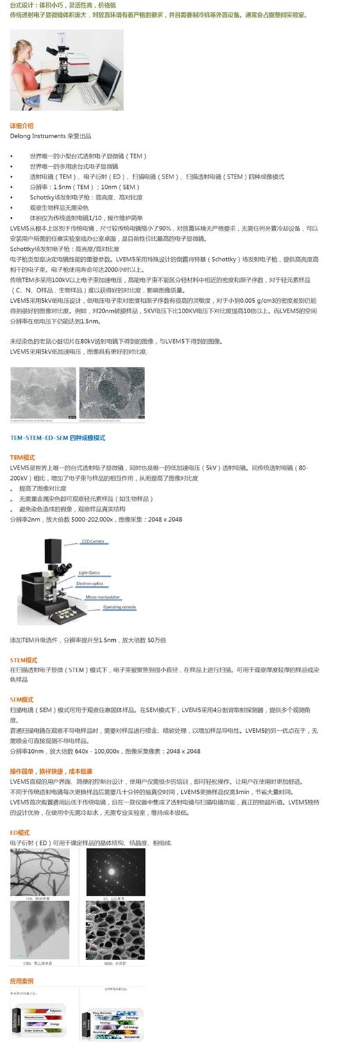 美国Delong台式透射电子显微镜LVEM5(Bench-top TEM)