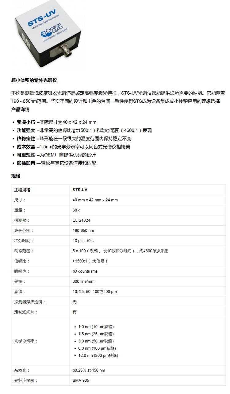美国OCEAN 超小体积的紫外光谱仪STS-UV