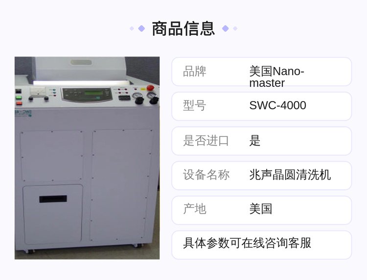 美国Nano-master兆声晶圆清洗机SWC-4000 单晶圆及掩模版清洗设备 产品关键词:nano清洗;清洗机兆声;晶圆nano;晶圆清洗设备美国;晶圆master;swc清洗