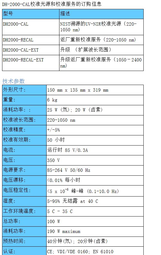 美国海洋光学ocean 氘卤钨标准能量灯DH-2000-CAL