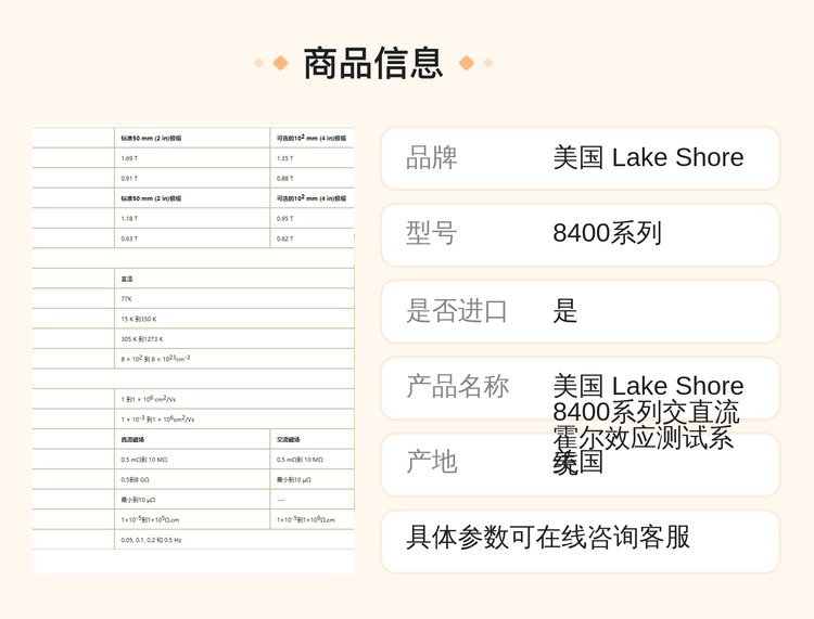 美国 Lake Shore 8400系列交直流霍尔效应测试系统