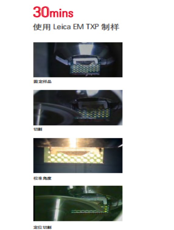 EM TXP ,此类样品都可被轻易处理完成。另外,借助其多功能的特点,Leica EM TXP 也是一款可为离子束研磨技术和超薄切片技术服务的效的前制样工具。