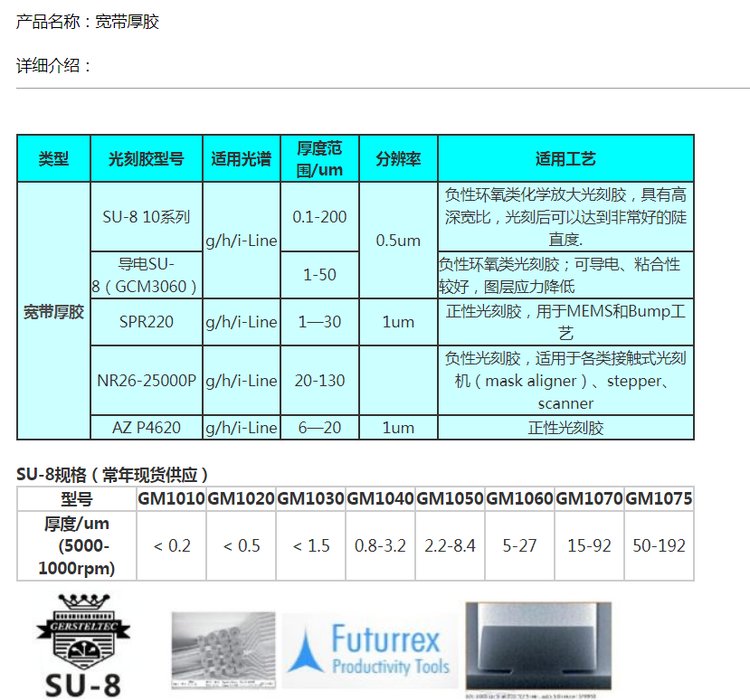 美国Microchem 光刻胶SU-8 10系列宽带厚胶