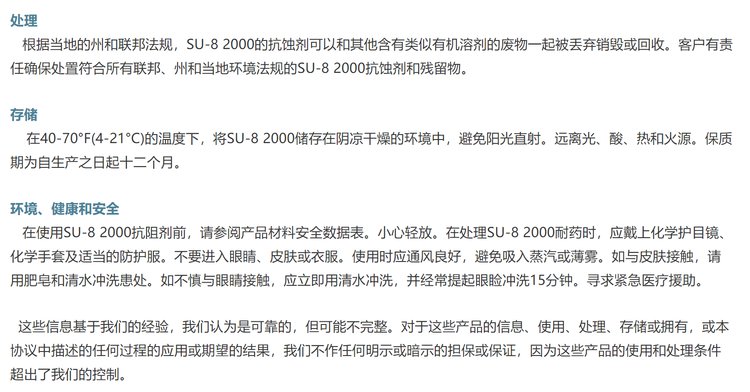 microchem光刻胶 SU-8 2000 性环氧负性光刻胶