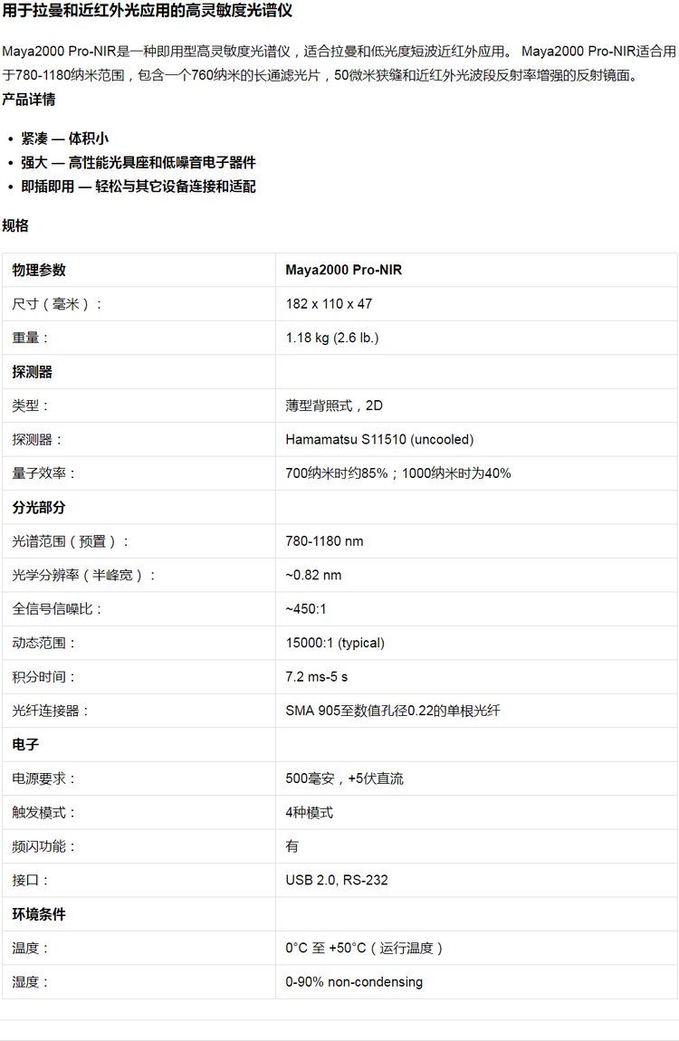 用于拉曼和近红外光光谱仪Maya2000 Pro-NIR