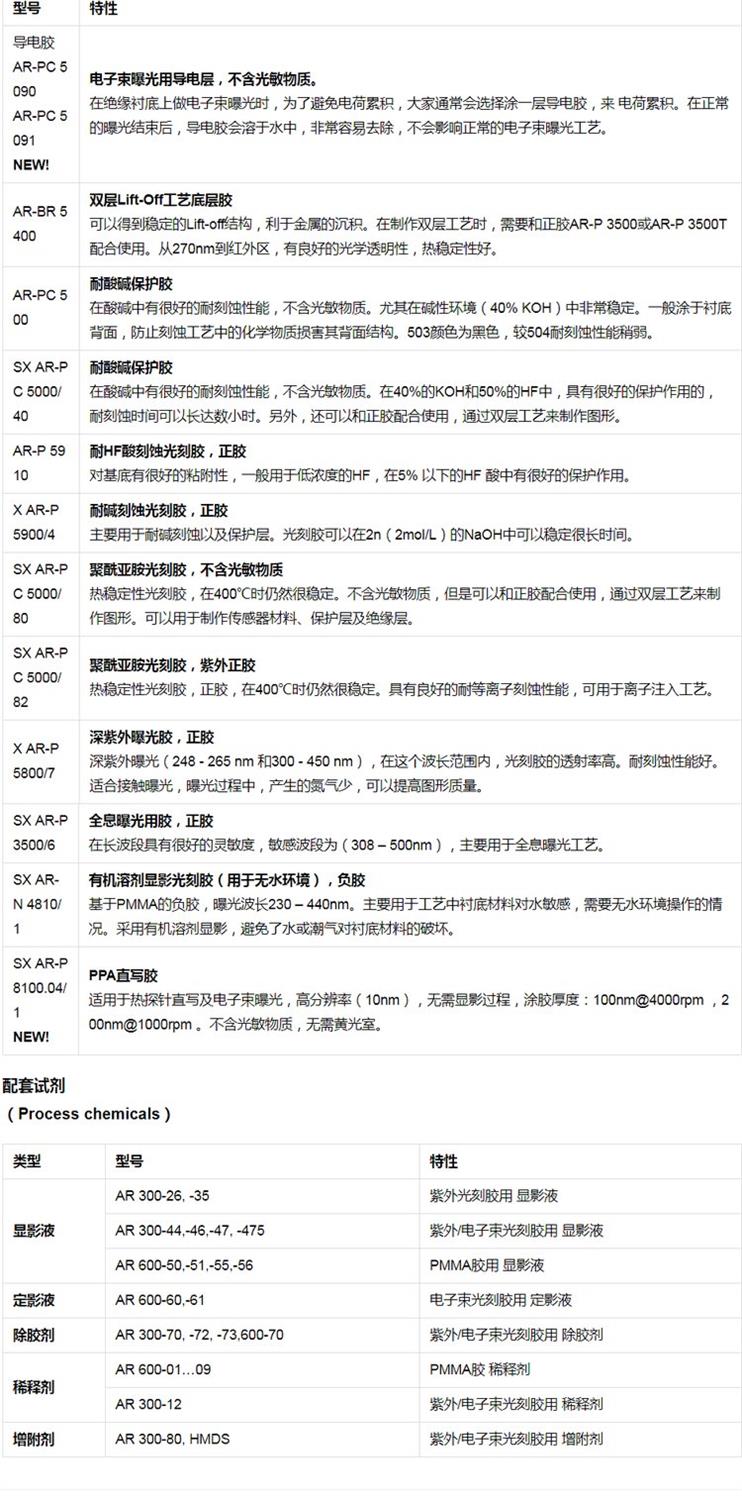 特殊工艺用光刻胶