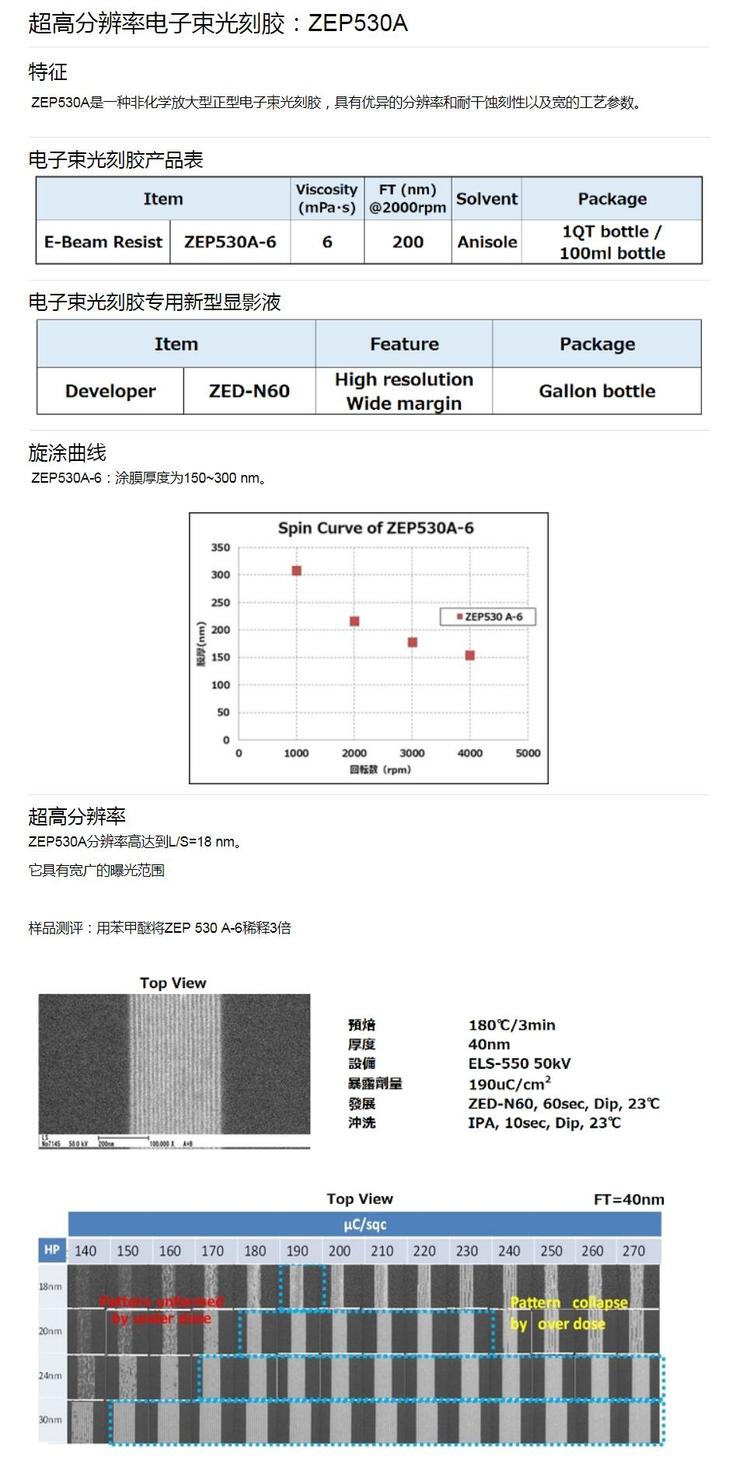 ZEON 电子束光刻胶ZEP530A 产品关键词:zep530光刻胶;zep胶;zep光刻胶