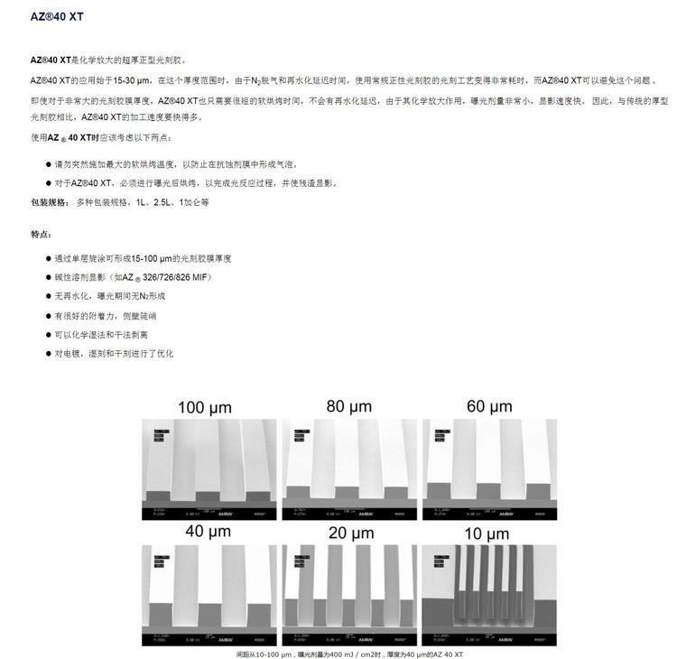 安智AZ 正性光刻胶厚胶 40XT