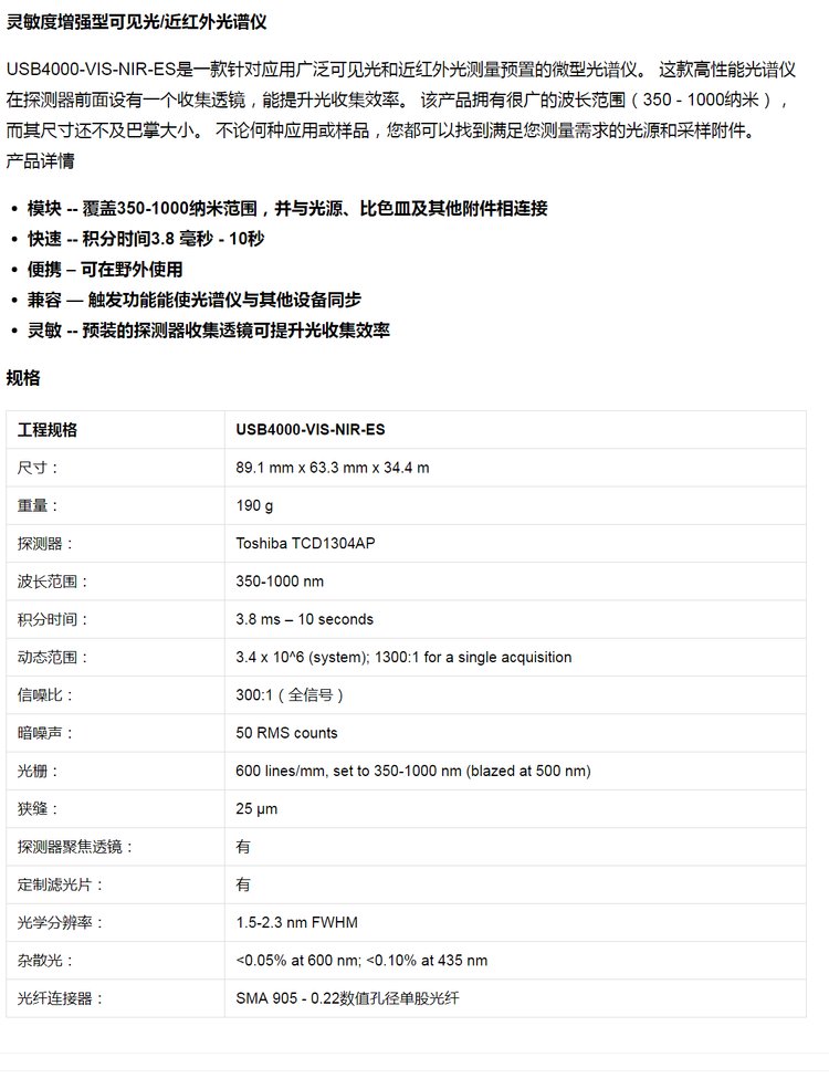 灵敏度增强型可见光/近红外光谱仪USB4000-VIS-NIR--ES