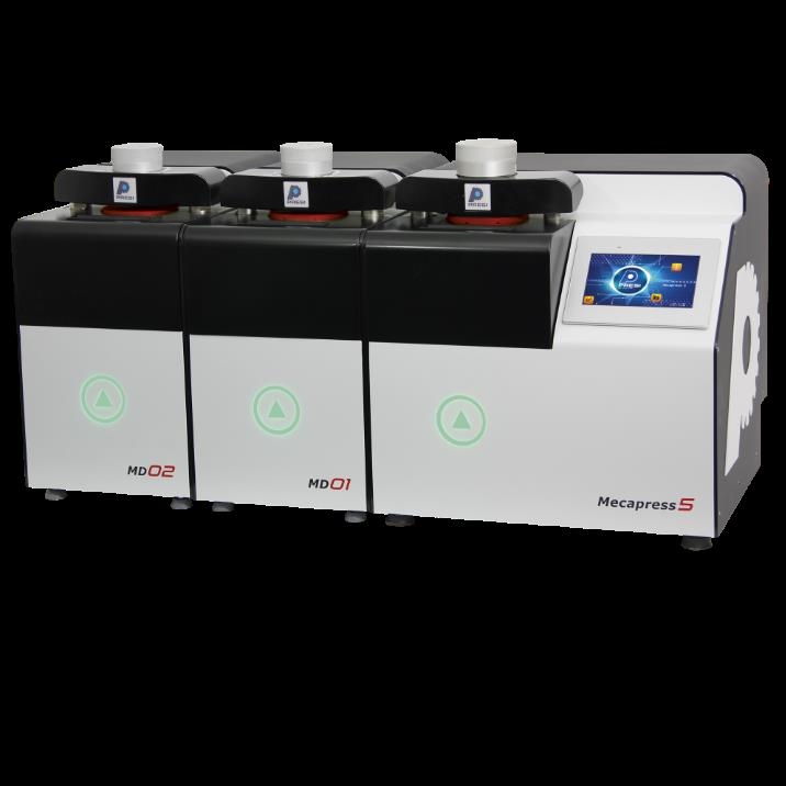 MECAPRESS 5是一款模块化液压热镶嵌机。它功能多样且操作简便,凭借自动模具识别功能,能够镶嵌出高品质、定制化的试样。